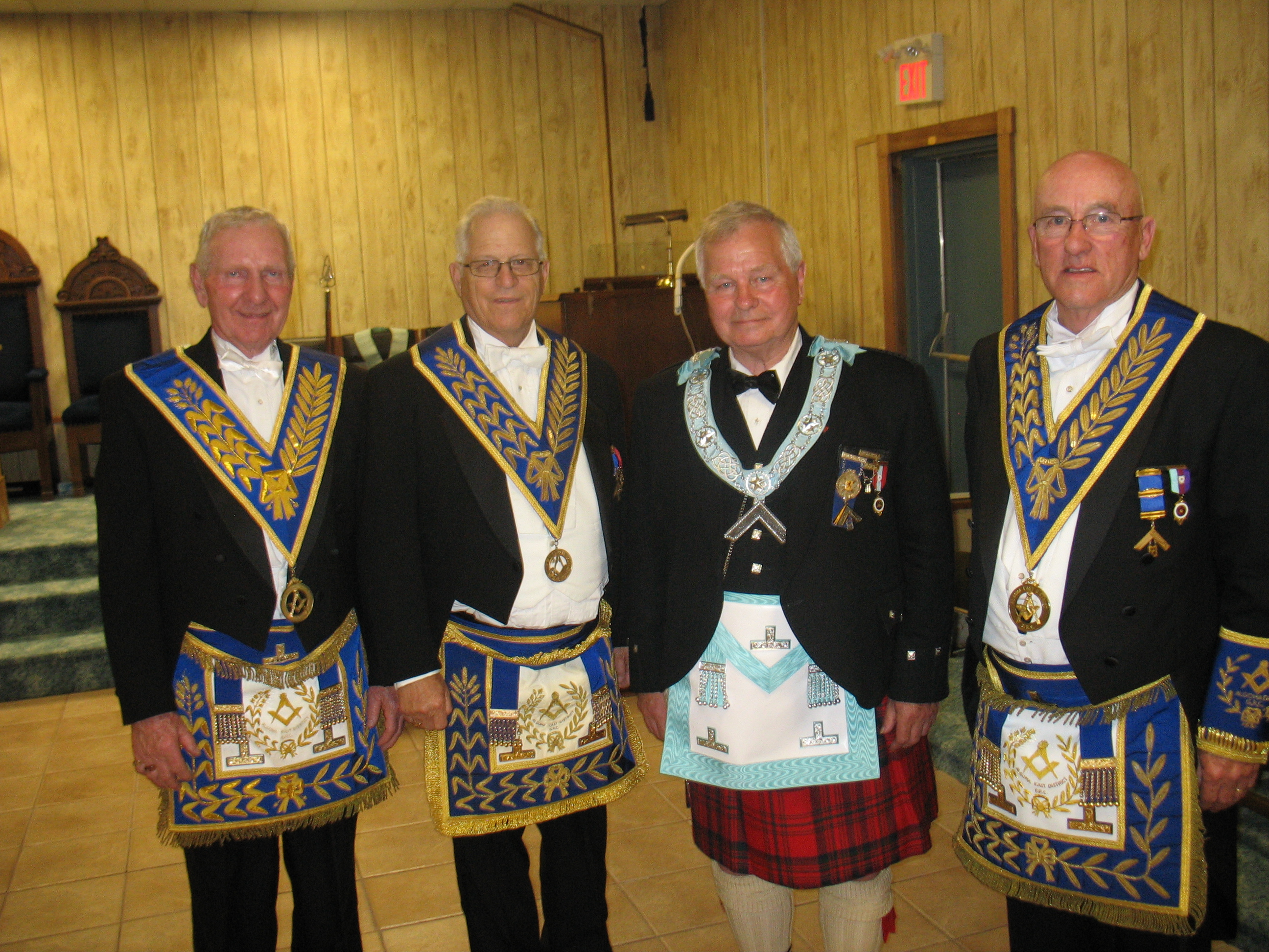Left to Right: R.W. Bro Ken Pierce, R.W. Bro. Robert McLean, New Worshipful Master of Elliot Lake Lodge No. 698 for 2016 / 2017 R.W. Bro. Norman Mathie and R.W. Bro. John H. Lewis D.D.G.M. Algoma East District 2015 /2016