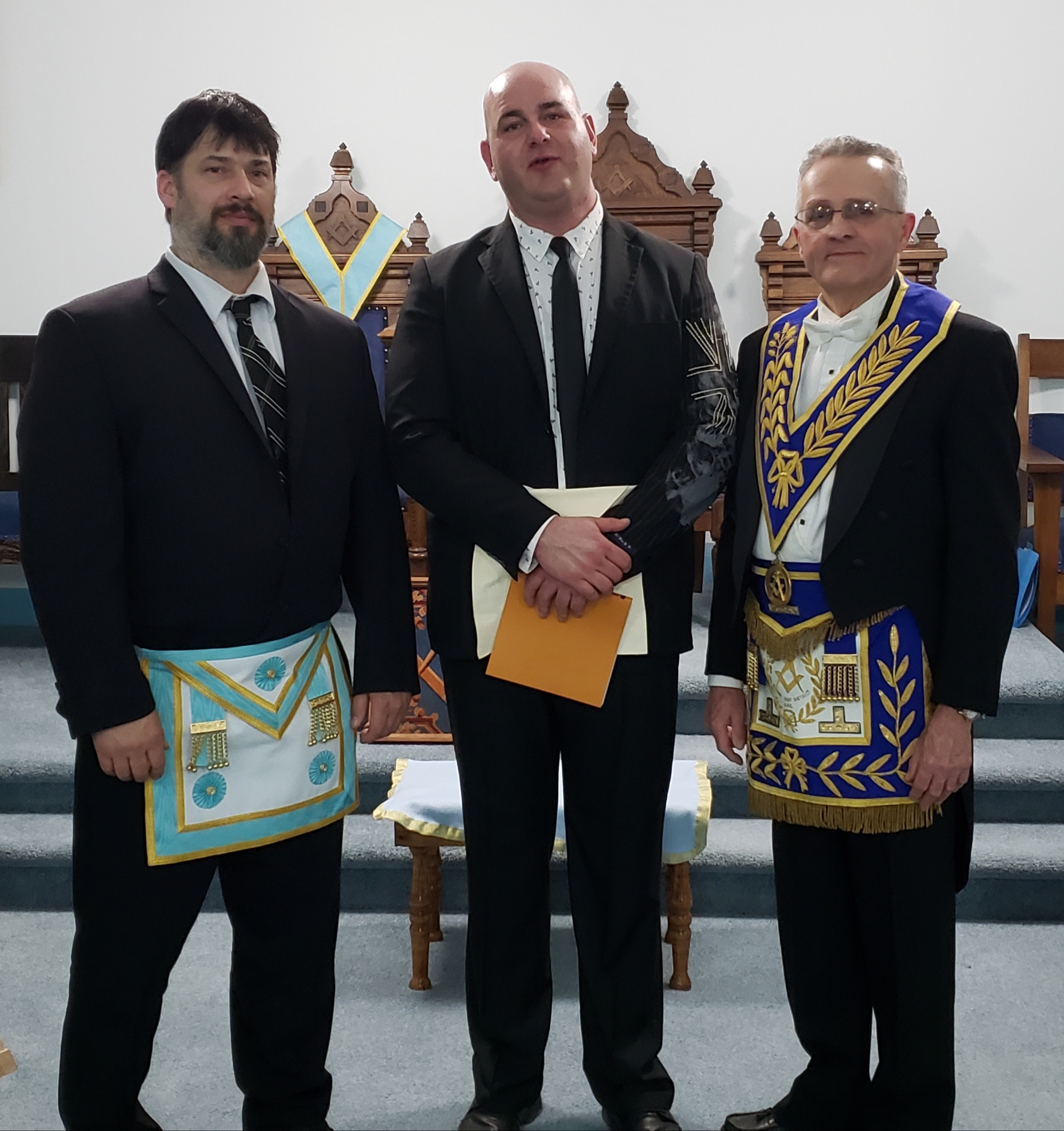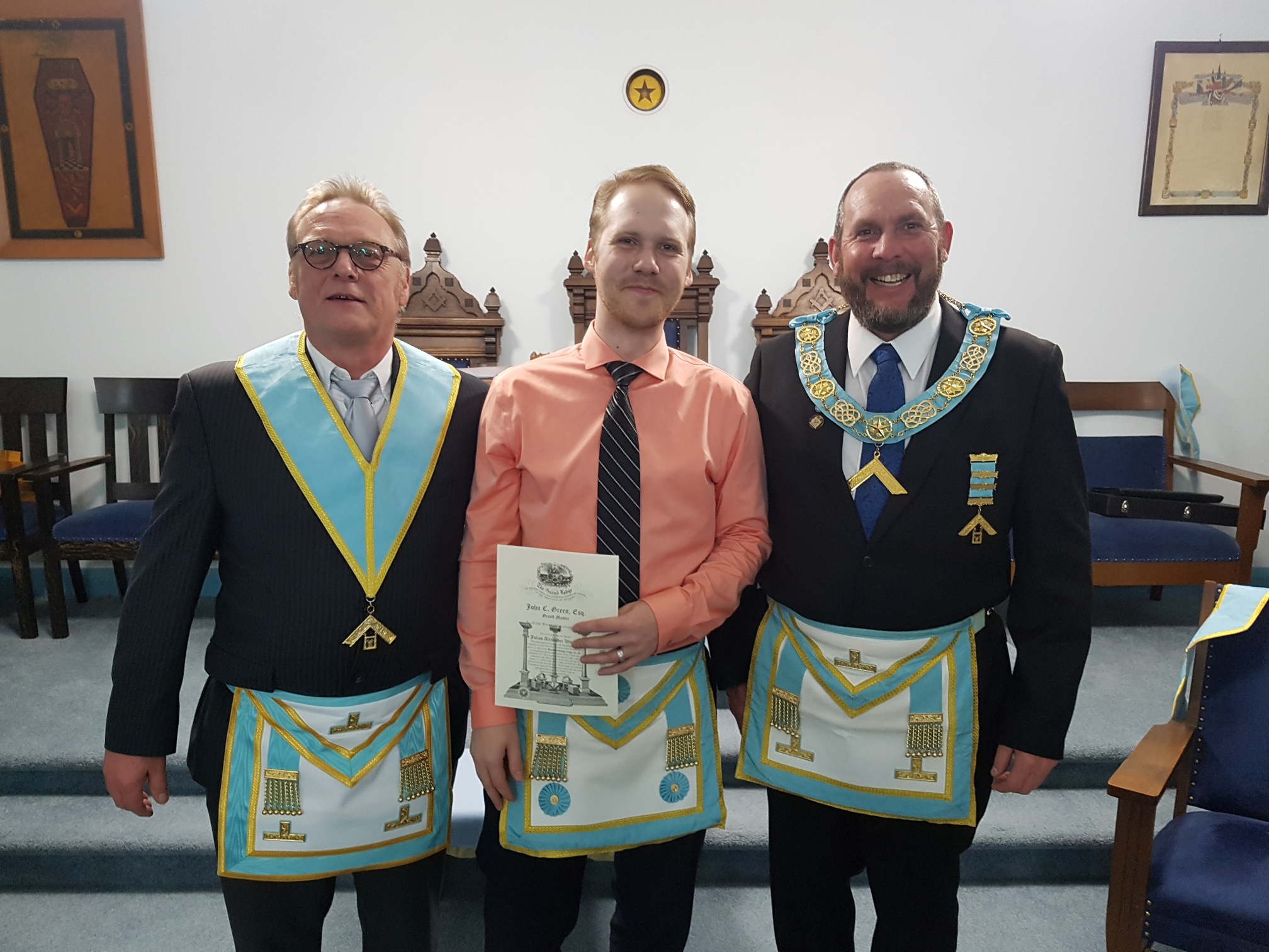 Left to Right: W. Bro. Rusty Joncas (Worshipful Master of Penewobikong Lodge), Bro. Chris Zagar (Candidate) and Bro. Dan Middaugh.