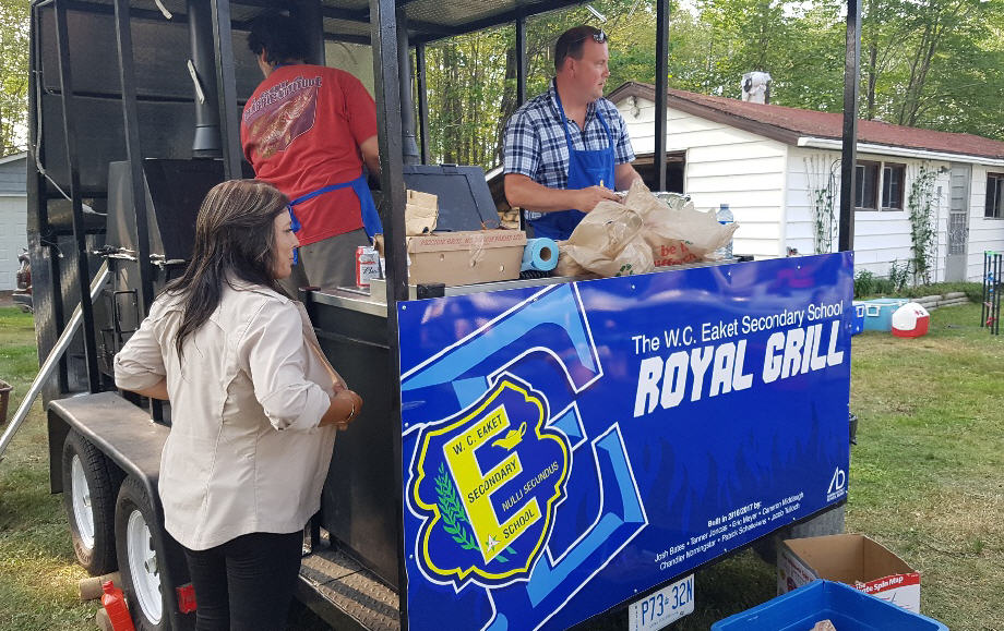 The BBQ was built by the students of W. C Eaket Secondary School under the guidance of their teacher Bro. Posteraro (cooking) Bro. Rusty Joncas is assisting while Tammy Richard is looking on.