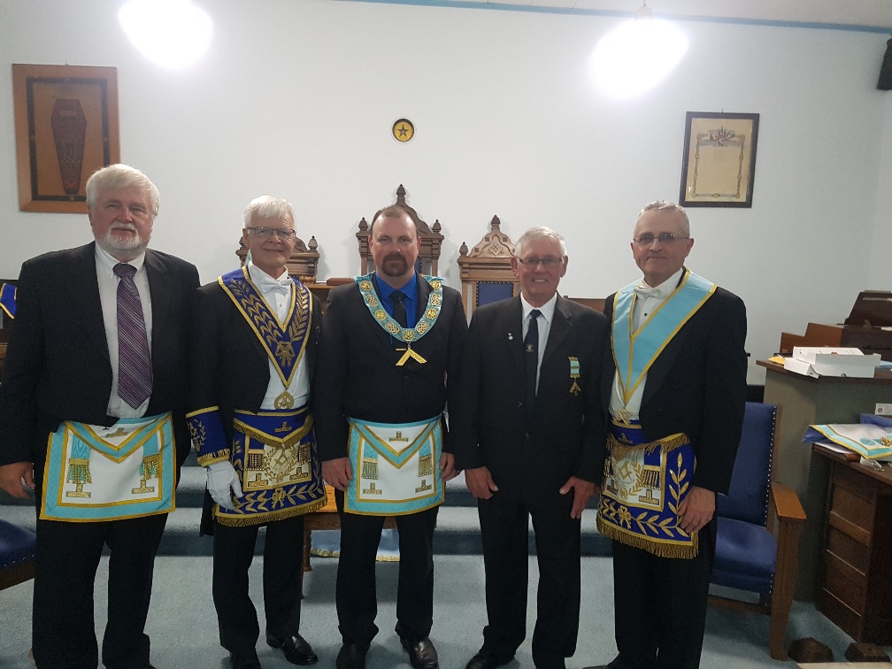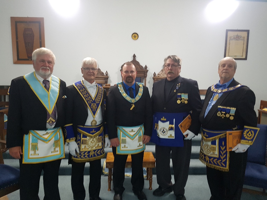 Back Row Left to Right: R.W. Bro. Paul Astles, W. Bro. Mark Daub, V.W. Bro. Armand Pitre, Bro. Ron Hamelin, Bro. Chuck Rendell.